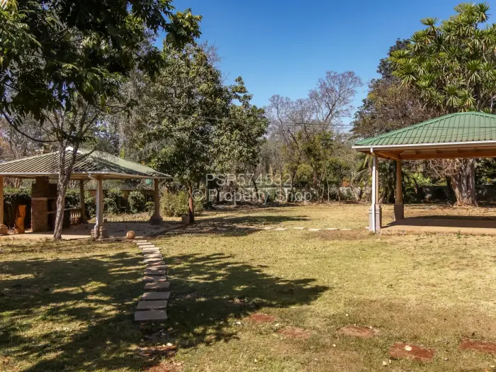 Step outside to discover a beautifully landscaped yard, adorned with a central garden and surrounded by several trees. The backyard offers peaceful retreats from daily life, featuring a charming gazebos ideal for gatherings. Additional conveniences include a cottage, staff quarters, six carports, an 8kva solar system for energy efficiency, 2 x 200l solar geysers, a borehole with 2 x 2000l water tanks for storage.