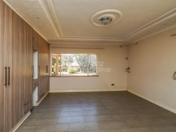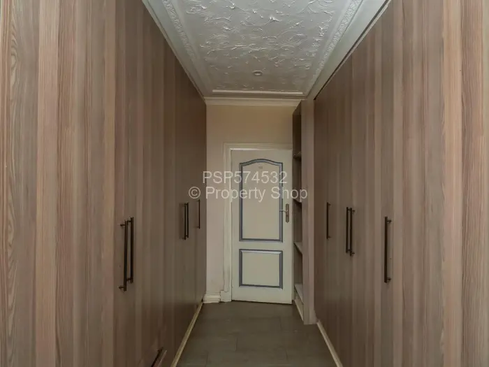 This property has a very interesting layout. In one corner you have the main bedroom with an en suite and big cupboard space. From the cupboard space a door will lead you to his and hers office/studies. In another corner you have a wing with 3 bedrooms and a bathroom with a separate toilet plus a guest toilet. On the other side on the entrance hall there a kitchen and another one bedroom en suite from the kitchen. The double lock up garage was converted into a one bedroom self contained cottage..