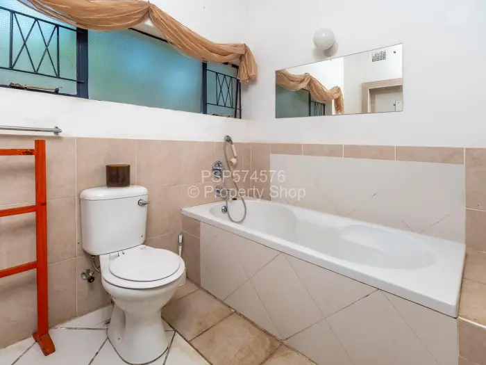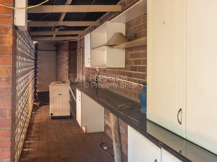This cozy family home has three bedrooms in the main house and two bathrooms, lounge, dining area, office with fitted cupboards, fitted kitchen and spacious laundry area with fitted cupboards. Outside there is a studio apartment comprising of one spacious room, kitchenette and bathroom and toile, all this under the entertainment deck. There is a pool and seasonal borehole, and water storage 12. 5 L