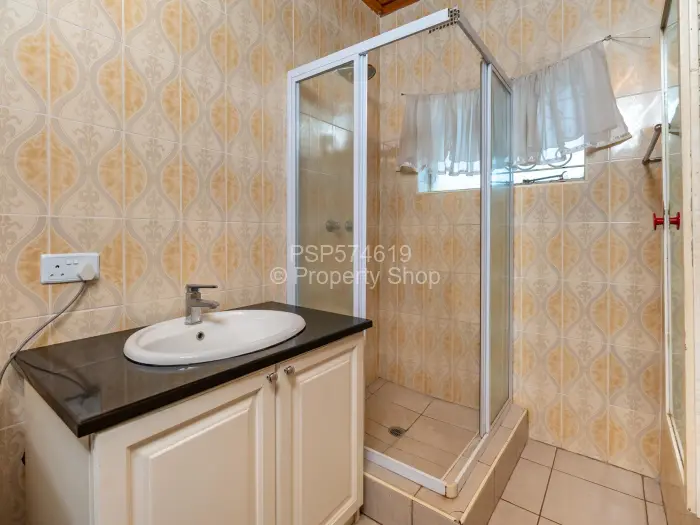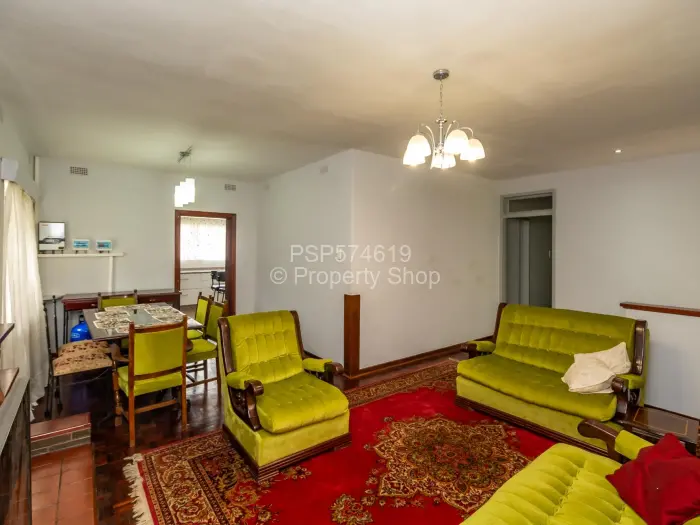 This lovely family home in Hillside, Harare, is the perfect balance of comfort and style. The house features a classic design with a pitched red-tiled roof and a harmonious blend of cream-colored walls and brick accents. Lush landscaping surrounds the property, with a green lawn and tall palm trees creating a tropical feel.