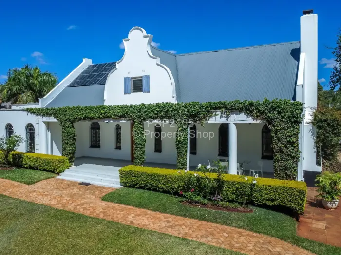 A magnificent 1. 67acre Cape Dutch estate, built in 1947, blends timeless charm with modern luxury. The main residence has 3 bedrooms and two bathrooms, with an elegant Aline living room with fireplace, purple flower faade, and beam ceiling, alongside a rustic countrystyle kitchen, separate laundry and utility space, and staff quarters featuring two rooms with a bathroom.
