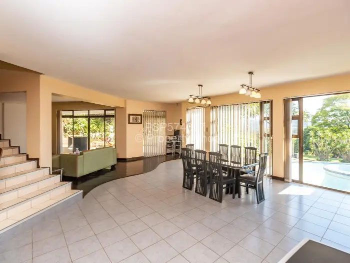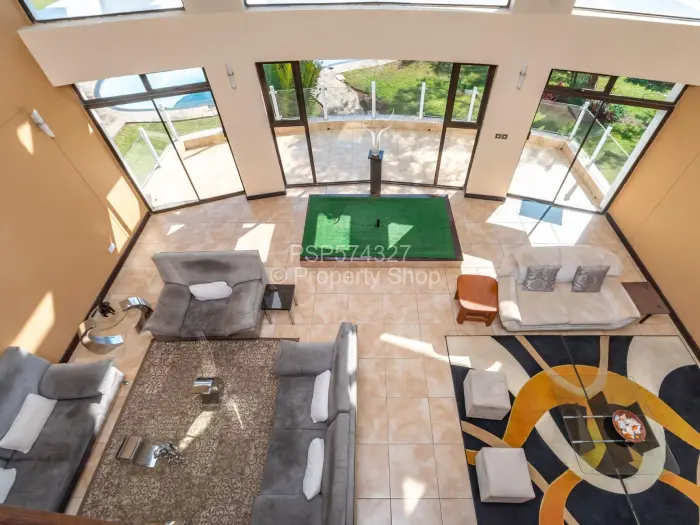 This spectacular property situated on a 1 acre plot with excellent views from all sides is located on the prestigious Price Drive in Borrowdale Brooke. As you enter the property through an impressive mahogany front door, you are greeted by a lovely water feature which is spotlit to enhance the high ceilings. The magnificent floor to ceiling windows give the property an abundance of natural light.