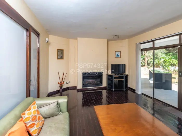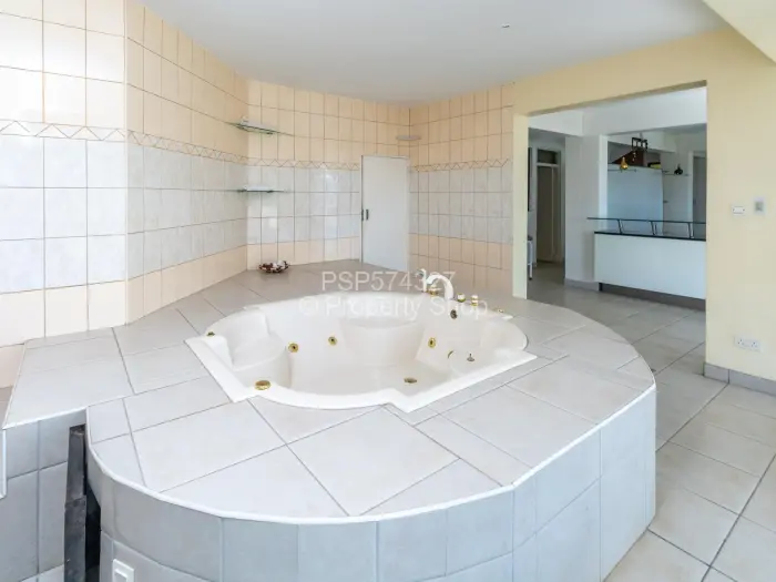 The property has an impressive indoor and outdoor entertainment areas. The indoor entertainment area is in the basement and it consists of a braai rotisserie, a large bar area with a storeroom/cellar and a jacuzzi while the outdoor entertainment area consist of a swimming pool with sunken fire pit and braai facilities that is surrounded by a beautiful garden with 8 different types of fruit trees, mature palms, flowering plants, jacarandas, mature cycads just to mention a few.
