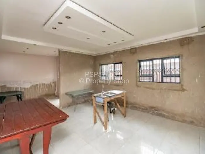 The kitchen (incomplete to finish to Her Majesty's taste), ideally situated, invites the chef in you to create culinary delights. Outside, the expansive grounds offer a borehole, promising a lush, well-kept garden year-round. Two garages ensure secure parking and extra storage.