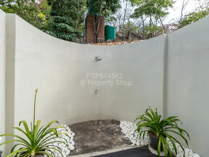 The beautifully landscaped garden, filled with Msasa trees, provides a long paved driveway which leads to the property. The prolific borehole adds a layer of convenience, ensuring a steady water supply with 8 x 5000-litre water tanks.