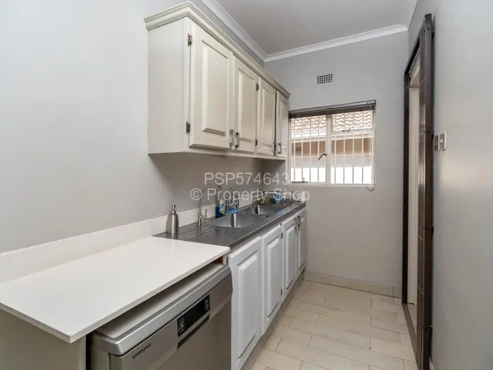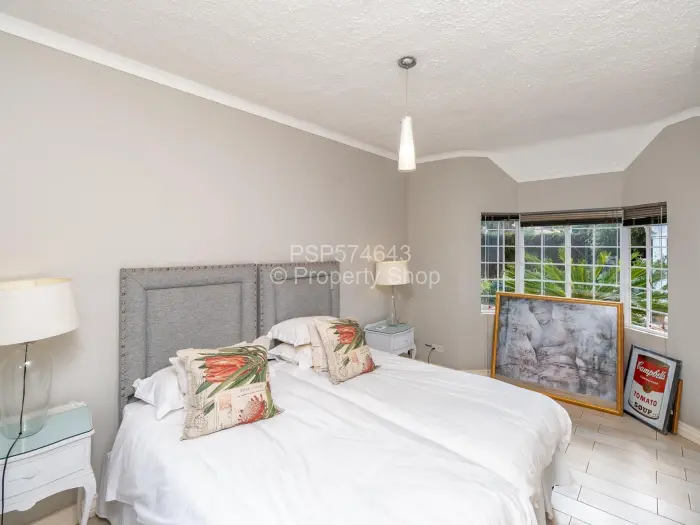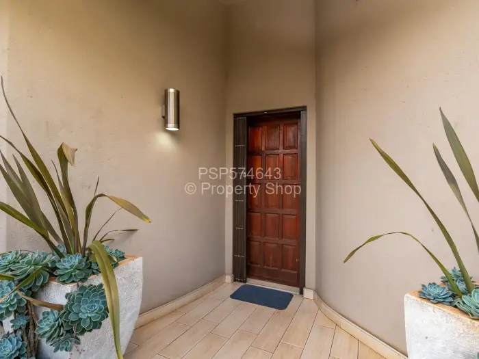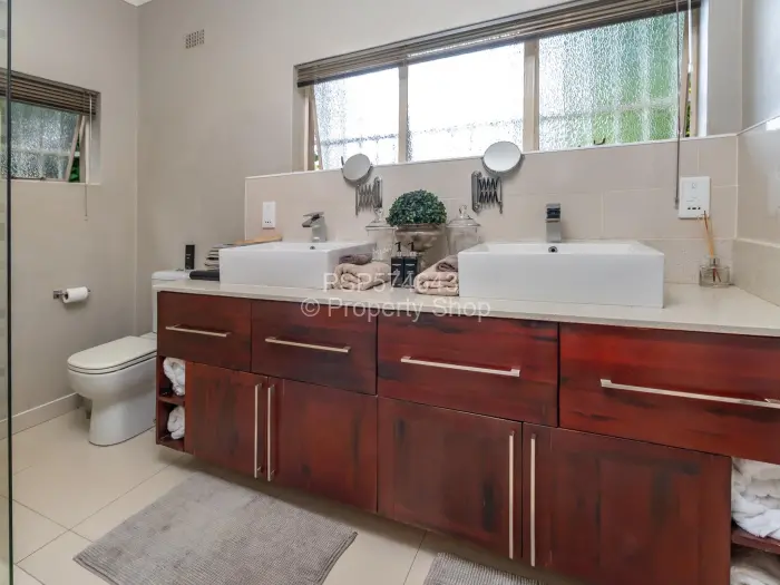 The home offers three well appointed bedrooms, including a spacious 43 sqm master suite with His and Hers walk in closets, a full dressing room with Caesarstone vanity, and a luxurious en suite bathroom. Bedroom 2 (15 sqm) includes built in cupboards, while Bedroom 3 (11. 5 sqm), currently used as an office, also features built in cupboards. Bedrooms 2 and 3 share a modern full bathroom, and a separate guest toilet is conveniently located near the living areas.