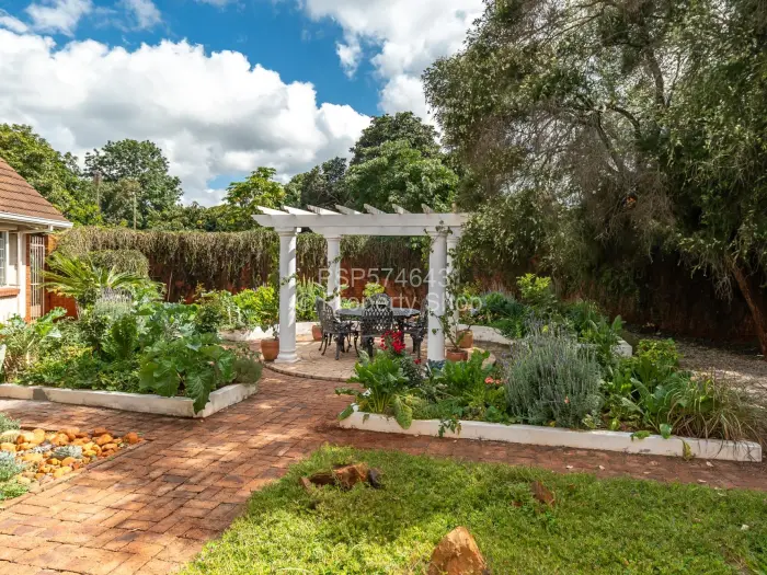 Covered verandah + private landscaped courtyard with pergola and herb/veg garden